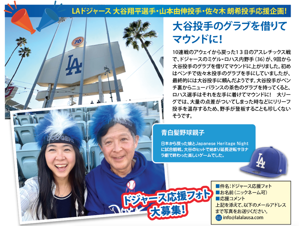 4月15日、大リーグでは毎年「ジャッキー・ロビンソンデー」として、黒人選手として初めて大リーグでプレーしたジャッキー・ロビンソンさんの功績をたたえ、すべての球団の選手がロビンソンさんの背番号「42」をつけてプレーします。今年も各球団では選手たちが、背番号「42」をつけて登場、「42」の背番号を着けた大谷選手や山本投手の姿もみられました。式典では1980年代にプロ野球の巨人でもプレーした経験を持つレジー・スミスさんがスピーチしました。イベントも盛りだくさんのドジャース!一緒に応援しましょう!