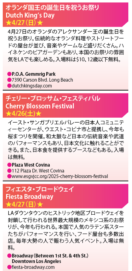 ロサンゼルス★新着イベントまとめ|4/18 – 4/24 2025