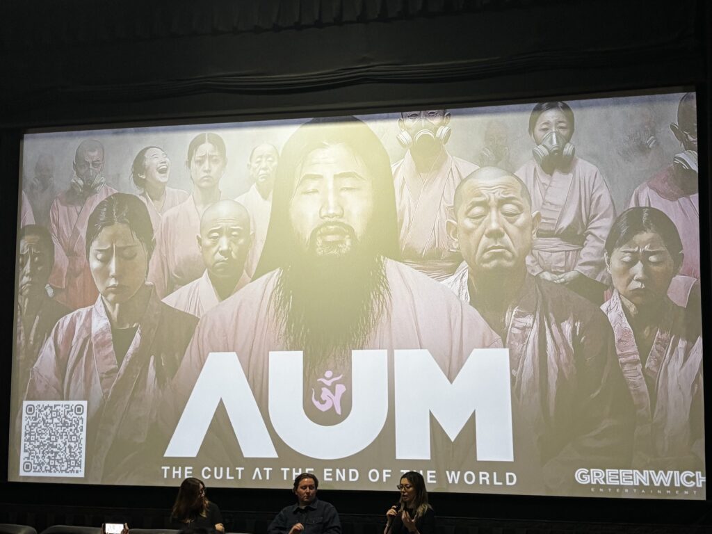 3月下旬に、サンタモニカのLaemmle Royalで行われたドキュメンタリー映画『AUM: The Cult at the End of the World』(2023)の劇場公開初日、Q&A付きの上映に行ってきました!その回のチケットはなんと完売。