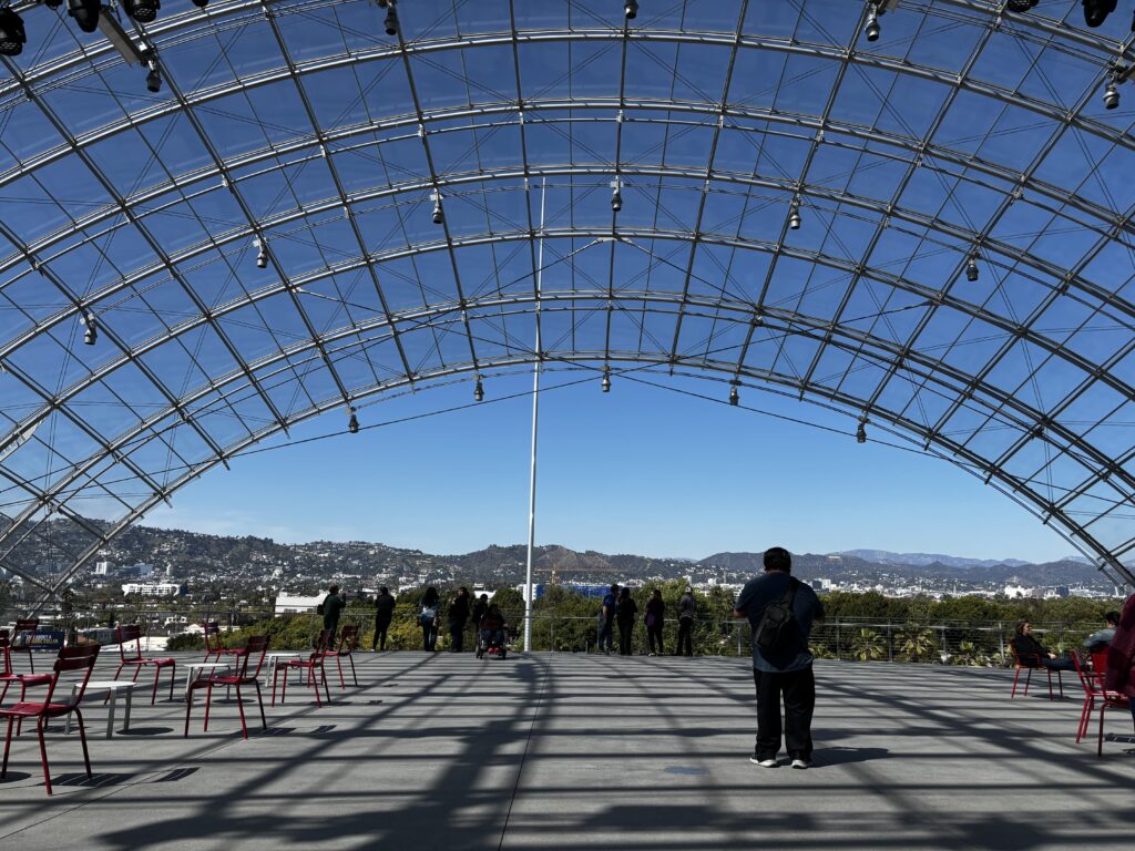 さて、話はアカデミーミュージアムに戻りますが、屋上には開放的なテラスが広がっており、少し遠いですがハリウッドサインも見ることができます!