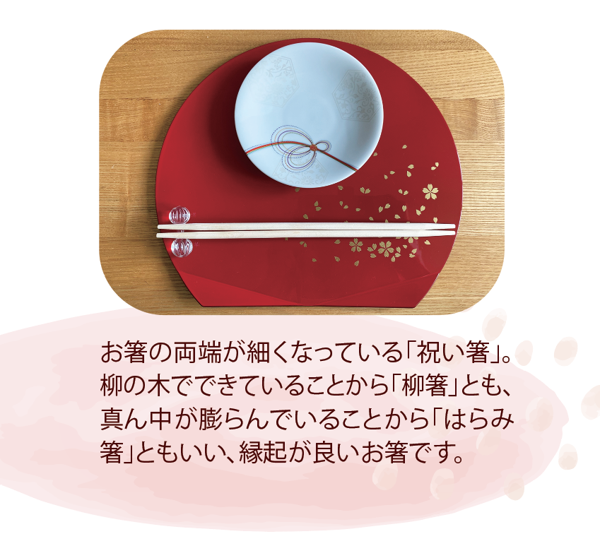 お正月のお節も毎年各家庭に来訪される歳神様へのお供えです。新年を言祝ぎ、神様に挨拶をした後にお節で直会をします。直会ですから、お節も神人共食。お節を食べる時に使う「祝い箸」の両端どちらも使えるように細くなっているのは、一方を人が使い、もう一方を神様がお使いになる為です。