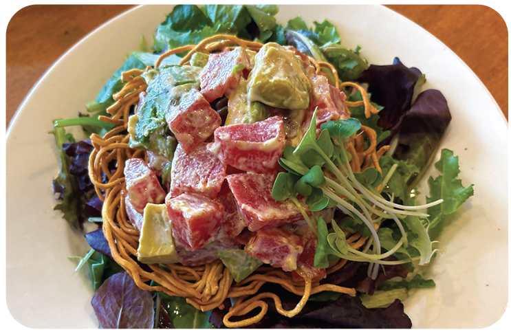 メニュー表は写真付きで分かりやすく、どれも美味しそうで目移りしてしまいます。これから暑さが増すロサンゼルスの夏におすすめメニューは、卵黄トッピングがポイントのピリ辛のまぜそばと、パリパリの麺がアクセントのアボカドツナサラダ。いろんなメニューを注文して、みんなでシェアするのもおすすめです!