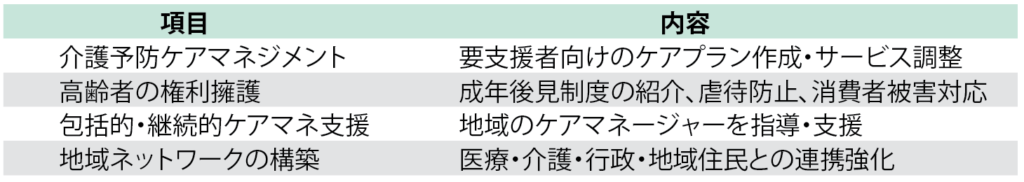 このように、介護や福祉にとどまらず、権利擁護や地域とのつながり支援まで含めて相談できます。