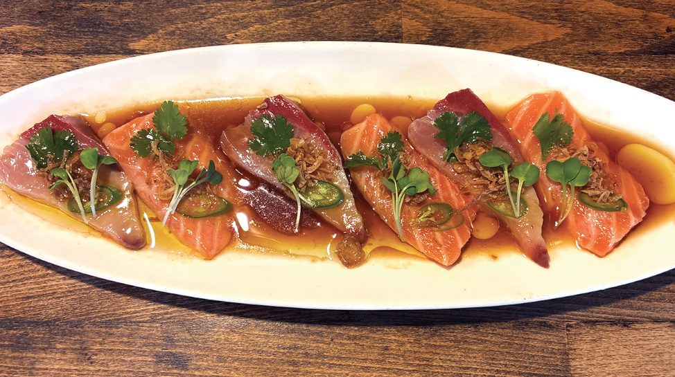 ハマチとサーモンのカルパッチョ 19.75ドル