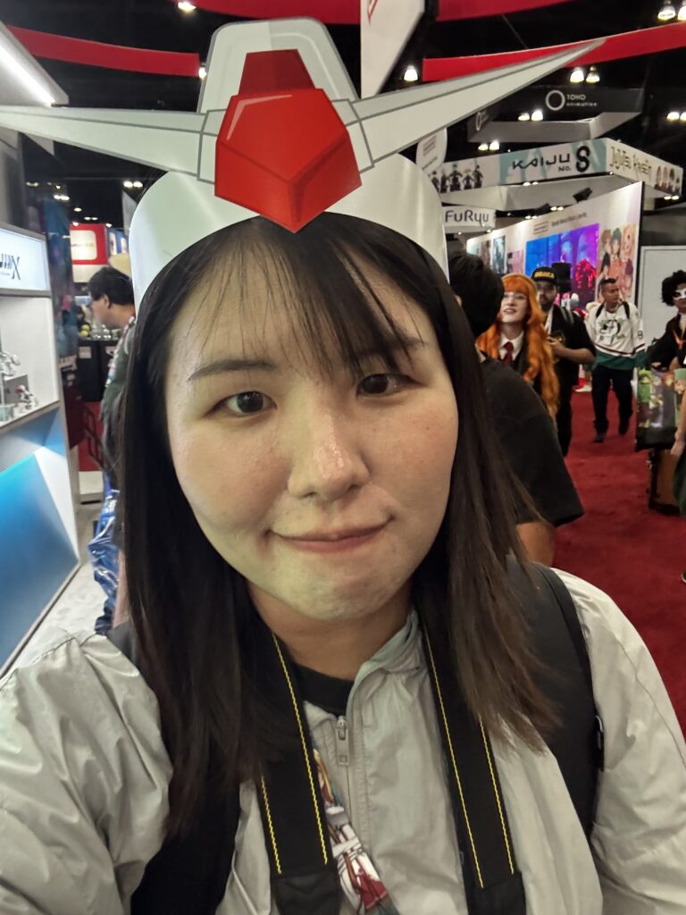 会場内では、アニメキャラクターがデザインされたバッグなどのグッズ無料配布が行われていて、色んなブースを巡っているうちに思いがけない嬉しいグッズをもらえて、とってもワクワクしました。個人的にはガンダムのこの被り物がテンションが上がりました。今はお家に飾っています。