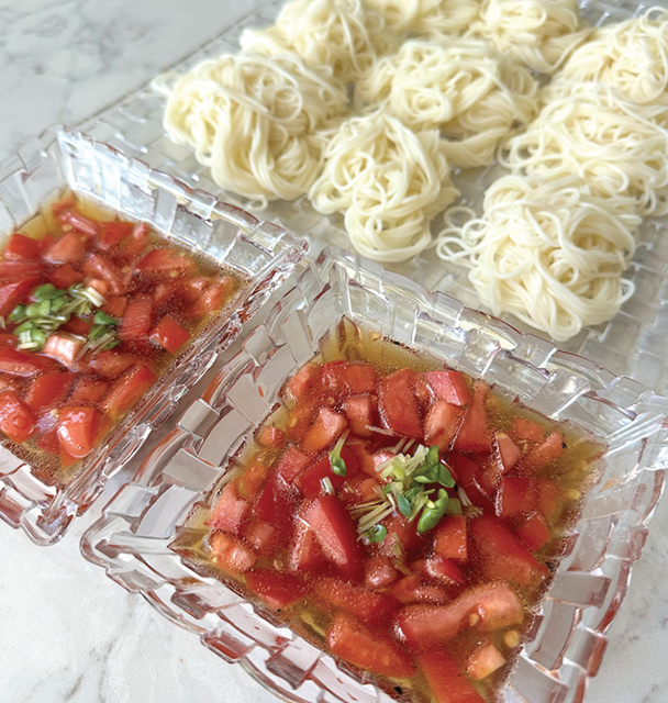 ビタミン豊富で美肌効果も免疫力アップにもなるトマトを角切りにしただけで、いつものお料理が栄養満点で高級感も倍増。千切りレタスを塩胡椒したしゃぶしゃぶ用の豚で巻きレンジで3分、角切りトマトと生姜と胡麻油を混ぜたぽん酢をかけただけの豚しゃぶトマトぽん酢がさっぱり絶品。いつものそうめんのめんつゆにトマトの角切りと胡麻油を入れるだけで栄養も高級感も倍増!火を使わず簡単に作れるので暑い夏の一品におすすめです♪