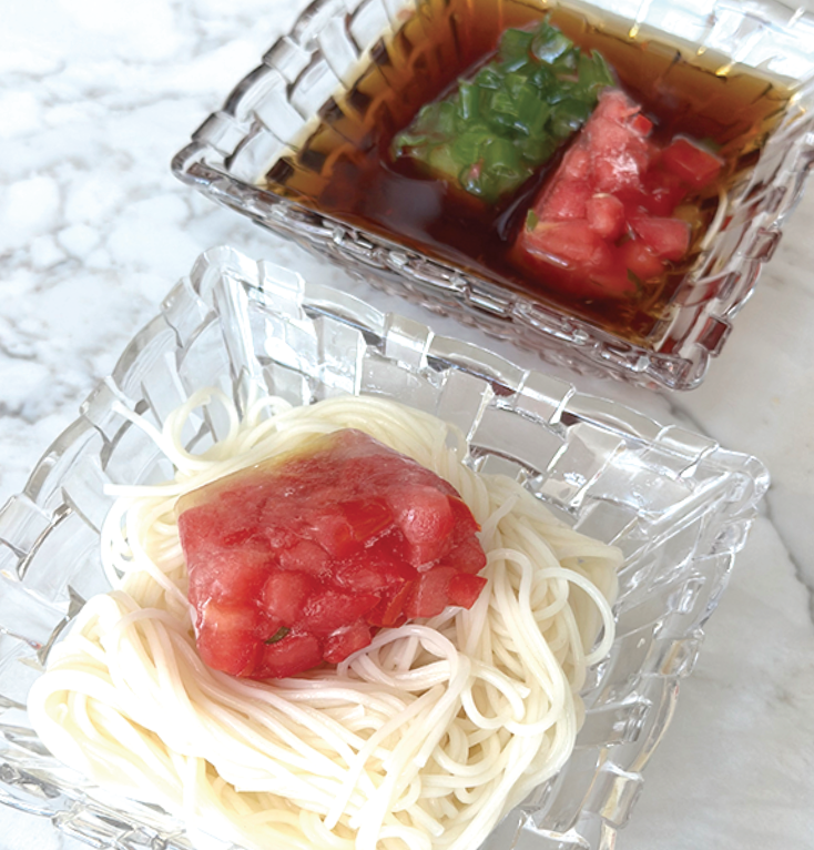 暑くて食欲がなくてもお料理をしたくなくても薬味氷を作っておけばおそうめんをいつでも美味しく頂けます。製氷皿の底にはおろし生姜を仕込み、みじん切りのトマトやネギ(コーンは冷やし中華用)を詰めたら水を入れて冷凍庫。手軽なのに美味しく栄養も摂れて見た目にもオシャレマジック♪