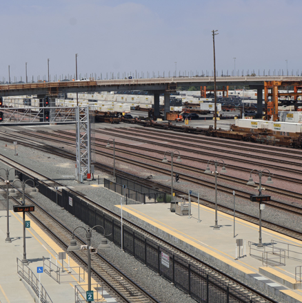 「Mt. Vernon Avenue Bridge」は、22の鉄道線路をまたいでおり、そのうち20は貨物鉄道のBNSF、1はメトロリンク、1はアムトラックのもの。鉄道線路が下を走るため、橋には大規模な補強が必要だった。その建設には53本の鋼製ビームが使用され、そのうち9本は182フィート(約55.4メートル)の長さで、それぞれ125トン(約125,000キログラム)の重量があり、州内で橋用に製造されたプレキャストガーダーとしては最長の記録となった。