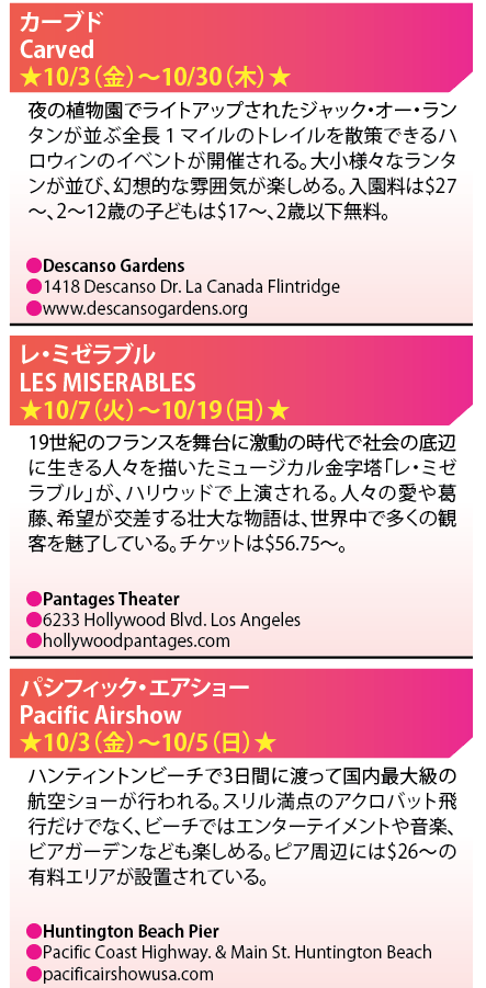 ロサンゼルス★新着イベントまとめ|10/3, 2025 –