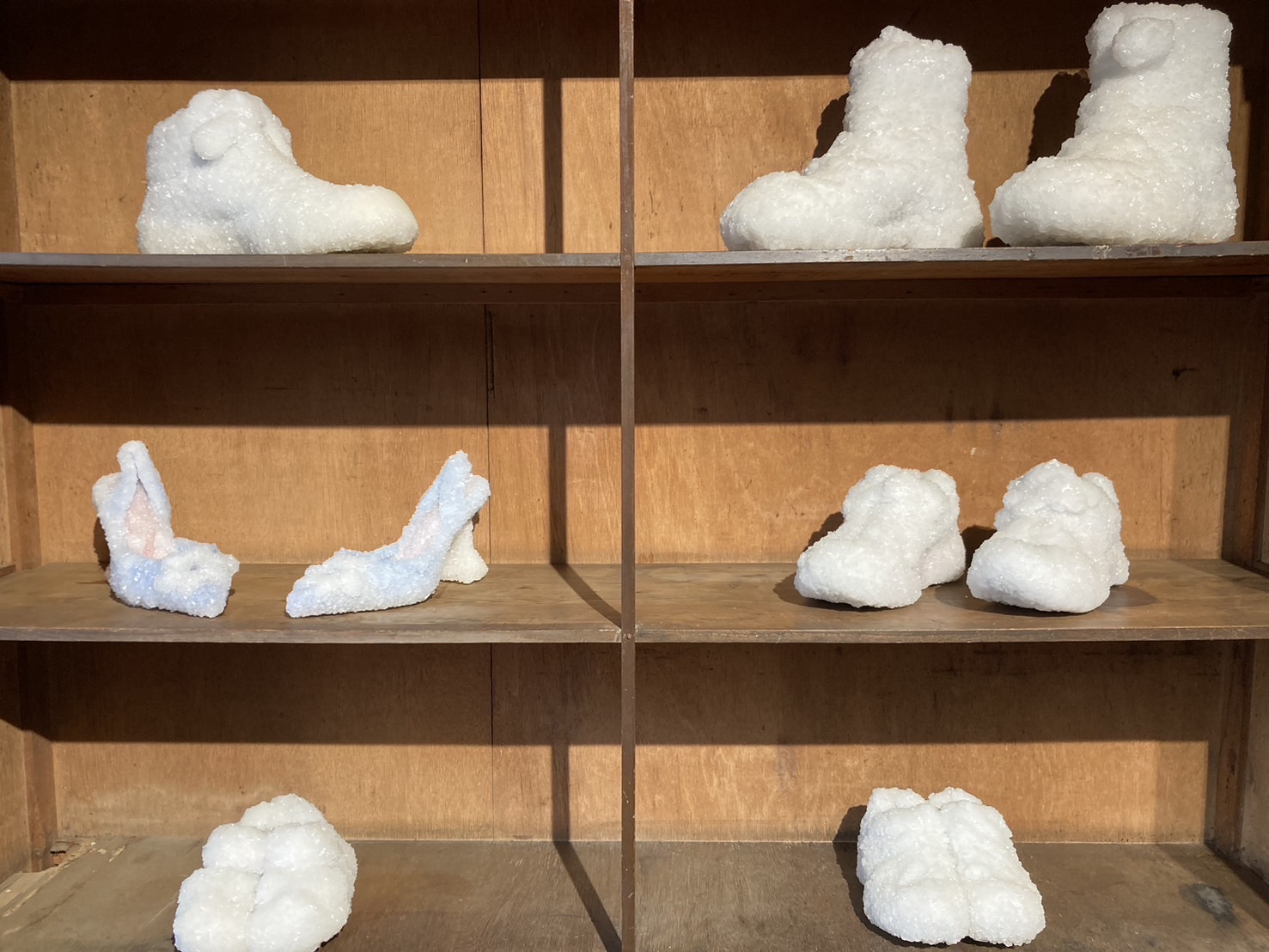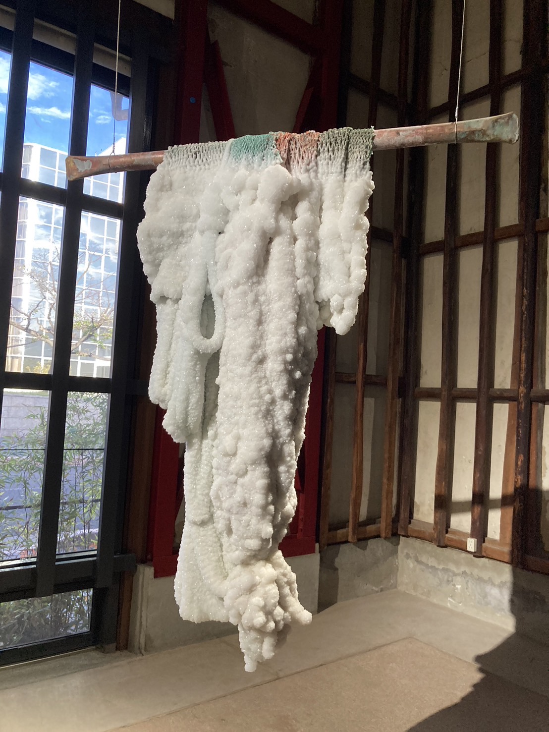 イスラエルの死海周辺を拠点におくシガリット・ランダウさんは、死海の30%の塩分濃度(通常は3%)を利用して、漁網、靴などを約3週間漬け込んだ作品「Capacity」を展開する。