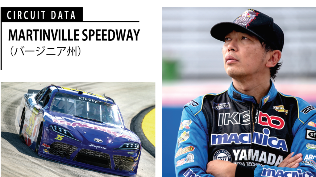 今回使用するマシンであるTOYOTA SUPRAとMARTINVILLE SPEEDWAY共に初めての走行になりますが、バンク角が浅く全長0.52マイルのショートオーバルですので、古賀が最も得意とするコースとなります。