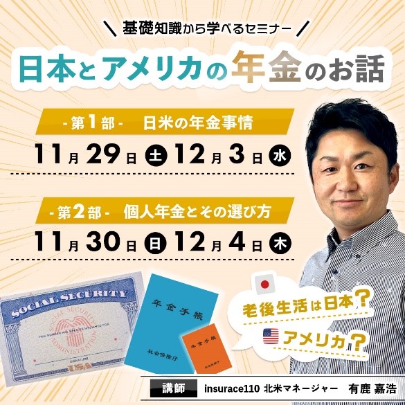 insurance110が、日米の年金について学べる無料オンラインセミナーを2部制で開催。