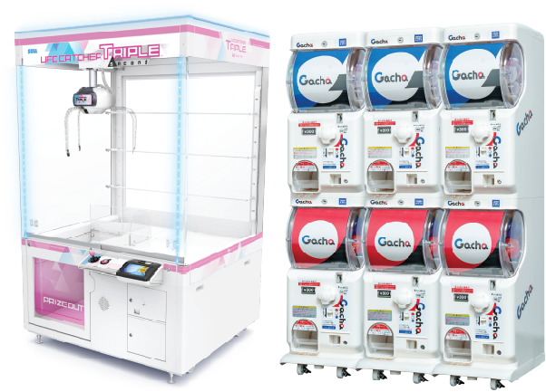タカラトミーアーツが手がけるガチャ、SEGAが製造するUFOキャッチャー、どのマシーンも日本で使用されているものと同じで、景品の多くがメーカー直輸入の本物です。