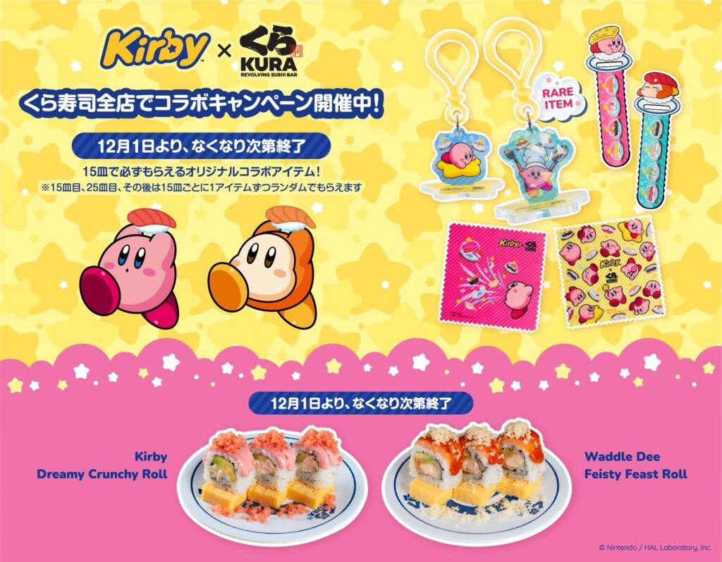 くら寿司全店では、12月1日よりKirbyとのコラボキャンペーンを実施中!15皿で必ずもらえるオリジナルコラボアイテム!