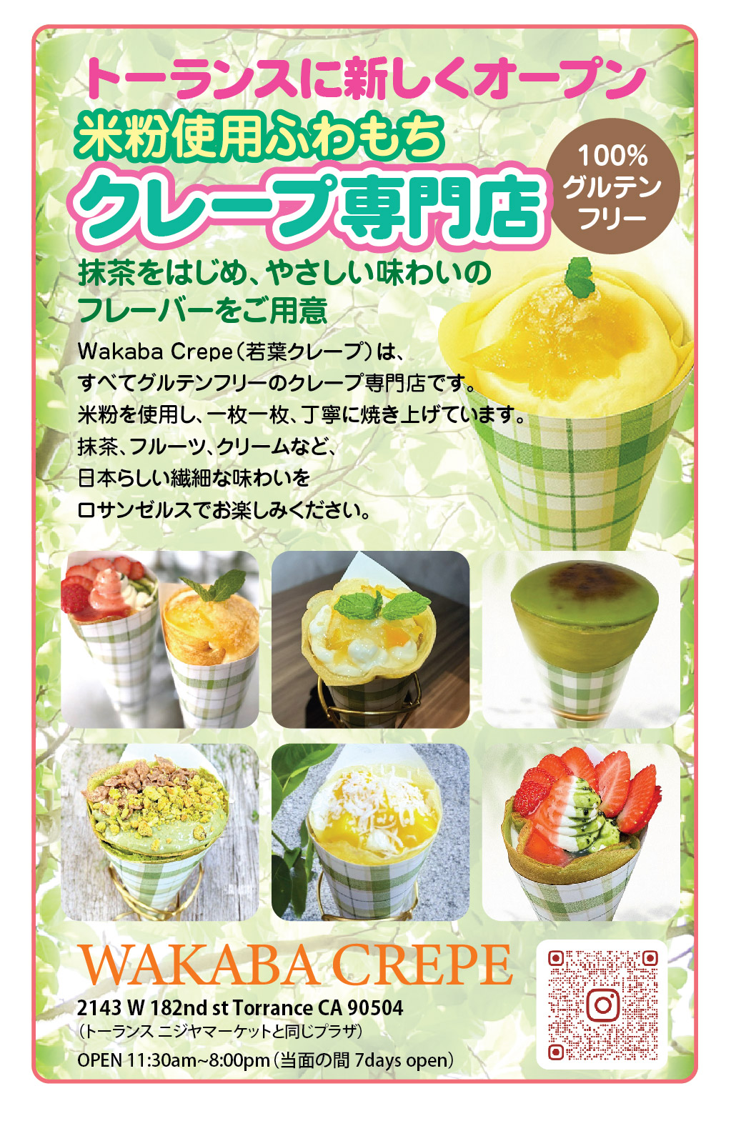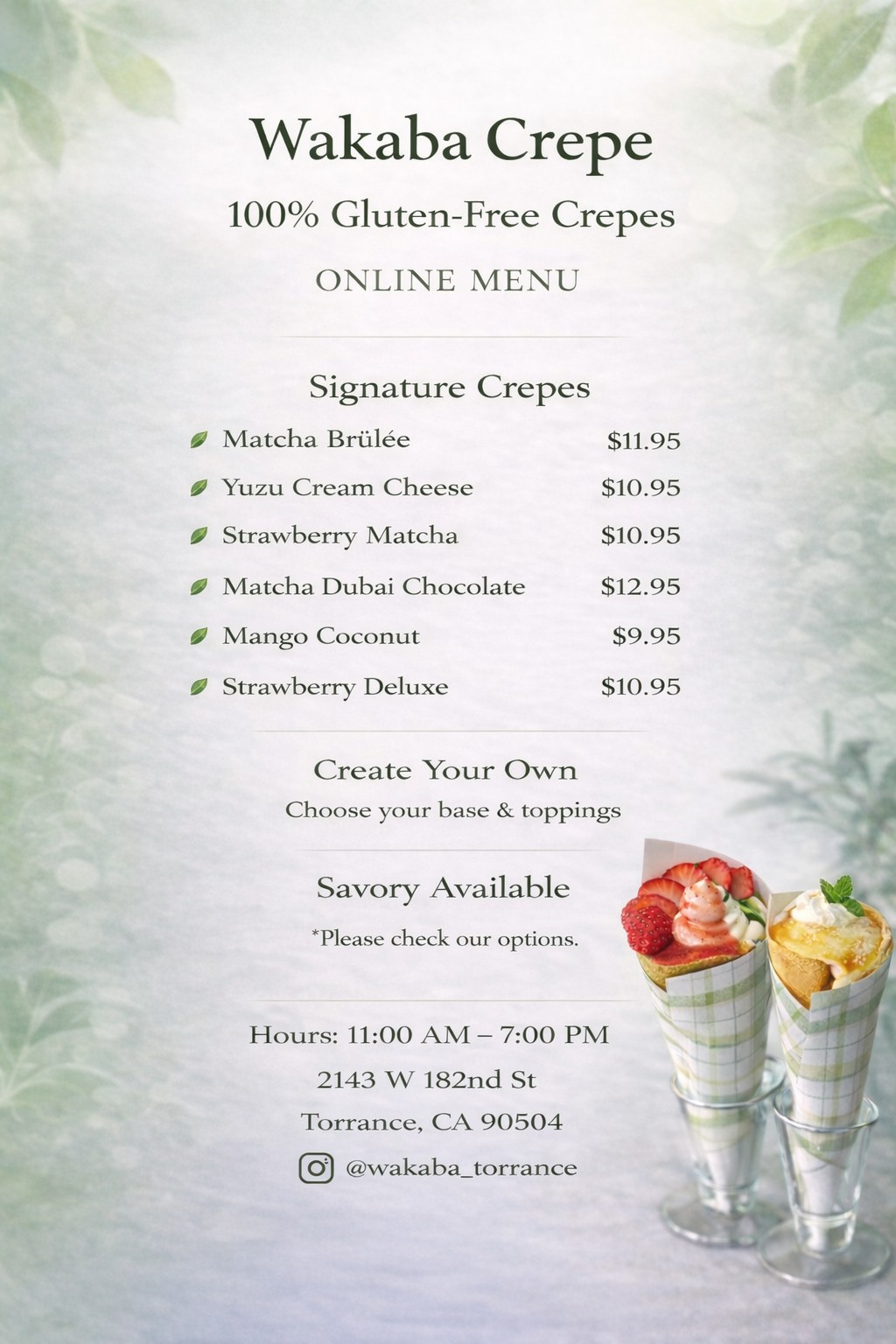 Wakaba Crepe(若葉クレープ)は、すべてグルテンフリーのクレープ専門店です。