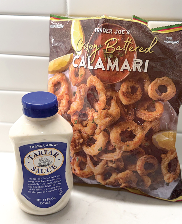 トレジョの冷凍食品コーナーに並ぶカラマリとタルタルソースボトル、これはおうちにいながらレストランで見慣れた大好きなおつまみになるのでは?エアフライヤーで数分で完成してしまったカラマリフライにタルタルがとっても美味しい♪チキン南蛮やエビフライ、お野菜とも相性抜群のタルタルソースは冷蔵庫の新しい常備品に。