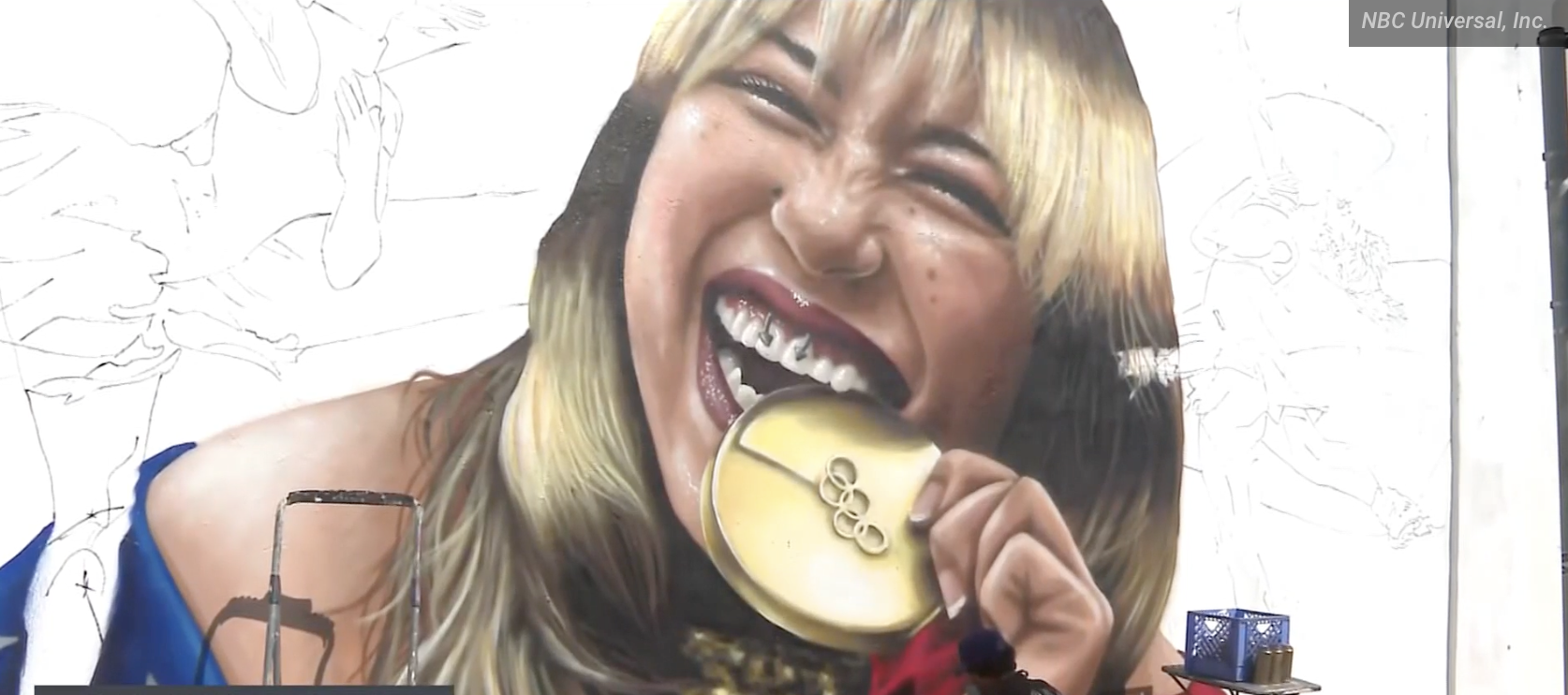 このミューラルは、2026年冬季オリンピックでのアリサ・リウの金メダル獲得を称えるために制作されたものだ。特に象徴的なのは、リウがメダルを噛むようなポーズを見せたあの瞬間を捉えた大迫力の描写。このミューラルは、地元アーティストの一人、グスターボ・ゼルメーニョ・ジュニア(Gustavo Zermeño Jr.)さんにより描かれた。