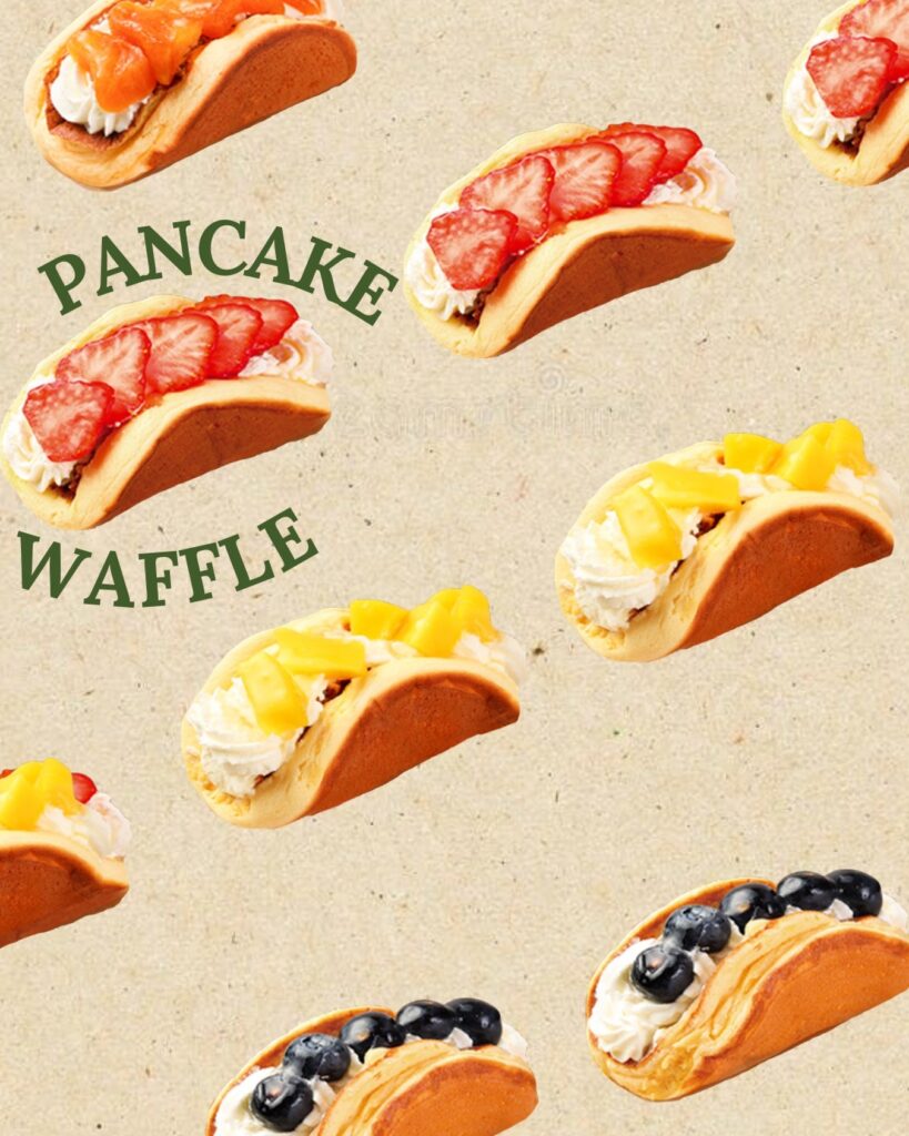 その名の通り、パンケーキのふわふわ感とワッフルの香ばしさを贅沢に掛け合わせたスイーツ。絶妙な厚みの黄金色の生地で、たっぷりのホイップクリームとフレッシュなフルーツをサンドした一品です。