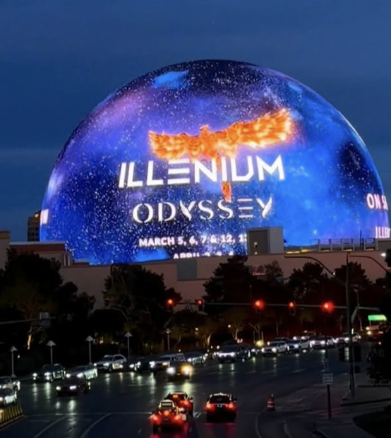 Sphereは巨大な球体型施設で、内部を覆う高精細LEDスクリーンや立体音響などを活用した没入型体験が特徴。コンサートや映像イベントなどで注目を集めている。