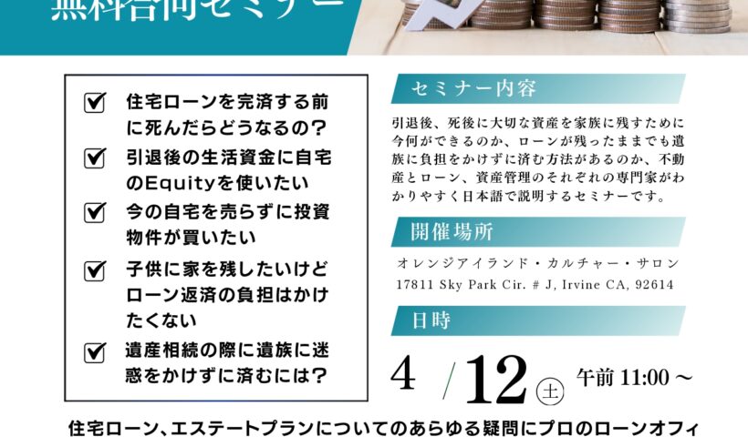 遺産相続の専門弁護士事務所 Kimura London & White LLPとの合同不動産ローンセミナーを開催します...